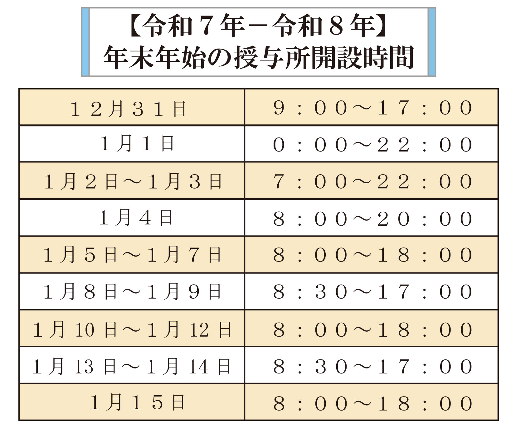 年末年始授与所開設時間のご案内